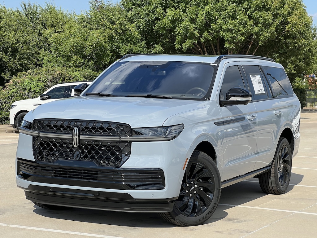 This 2025 Lincoln Navigator Reserve in Gray Mist Metallic Tri-Coat comes with the following features: 3.5L V6 10-Speed Automatic 4WD 4WD and Black Onyx Leather Equipment Group 202A Reserve II, Heavy-Duty Trailer Tow Package (26mm Engine Radiator and Trailer Brake Controller), Jet Appearance Package (Black Accent Badge, Black Accent Interior Pack, Black Beltline Molding, Black Painted Roof Rails, Front Bumper Fascia, Lincoln Lit Star, Unique Lincoln Grille Pillar Black Surround, and Wheels: 22 High-Gloss Ebony Aluminum), 4WD, Black Onyx Leather, 28 Speakers, 3rd row seats: split-bench, 4-Wheel Disc Brakes, ABS brakes, Adaptive suspension, Adjustable pedals, Air Conditioning, Alloy wheels, AM/FM radio: SiriusXM with 360L, Apple CarPlay/Android Auto, Audio memory, Auto High-beam Headlights, Auto Htd & Ventilated Premium Lthr Captain's Chair, Auto Start-Stop Technology, Auto tilt-away steering wheel, Auto-dimming door mirrors, Auto-dimming Rear-View mirror, Auto-leveling suspension, Automatic temperature control, Brake assist, Bumpers: body-color, Compass, Delay-off headlights, Driver door bin, Driver vanity mirror, Driver's Seat Mounted Armrest, Dual front impact airbags, Dual front side impact airbags, Electronic Stability Control, Emergency communication system: 911 Assist, Exterior Parking Camera Rear, Four wheel independent suspension, Front anti-roll bar, Front Bucket Seats, Front dual zone A/C, Front License Plate Bracket, Front reading lights, Fully automatic headlights, Garage door transmitter, Heated door mirrors, Heated front seats, Heated rear seats, Heated steering wheel, HVAC memory, Illuminated entry, Leather steering wheel, Lincoln Connect, Lincoln Premium Connectivity, Low tire pressure warning, Memory seat, Navigation system: Connected Navigation (1-year trial), Occupant sensing airbag, Outside temperature display, Overhead airbag, Overhead console, Panic alarm, Passenger door bin, Passenger seat mounted armrest, Passenger vanity mirror, Pedal memory, Power adjustable rear head restraints, Power door mirrors, Power driver seat, Power moonroof: Panoramic Vista Roof, Power passenger seat, Power steering, Power windows, Radio data system, Radio: Revel Ultima 3D AM/FM/HD Audio System, Rain sensing wipers, Rear air conditioning, Rear anti-roll bar, Rear audio controls, Rear reading lights, Rear window defroster, Rear window wiper, Reclining 3rd row seat, Remote keyless entry, Security system, SiriusXM w/360L, Speed control, Speed-sensing steering, Speed-Sensitive Wipers, Split folding rear seat, Spoiler, Steering wheel memory, Steering wheel mounted audio controls, Tachometer, Telescoping steering wheel, Tilt steering wheel, Traction control, Trip computer, Turn signal indicator mirrors, Variably intermittent wipers, Ventilated front seats, and Wheels: 22 Dark Tarnished Aluminum.