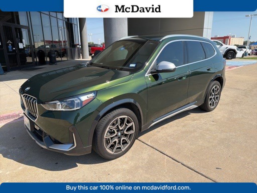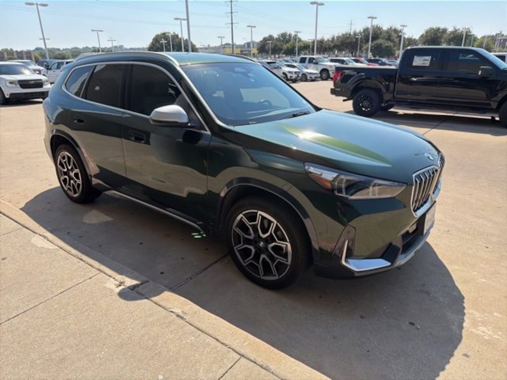 CARFAX One-Owner. San Remo Green Metallic 2023 BMW X1 xDrive28i AWD 7-Speed Automatic 2.0L 4-Cylinder DOHC 16V TwinPower Turbo BLUETOOTH, REAR BACK UP CAMERA, APPLE CAR PLAY, 7 Speakers, Alloy wheels, Apple CarPlay & Android Auto Compatibility, Auto High-beam Headlights, Auto-Dimming Interior & Exterior Mirrors, Auto-Dimming Rear-View Mirror, Comfort Access Keyless Entry, Compass, Connected Package Pro, Convenience Content 1, Convenience Package, Emergency communication system: BMW Assist eCall, Exterior Parking Camera Rear, Front dual zone A/C, Heated Front Seats, Heated Steering Wheel, Included Content 2, Knee airbag, Memory seat, Navigation, Panoramic Moonroof, Power driver seat, Power Front Seats, Power Liftgate, Power steering, Power windows, Radio data system, Rain sensing wipers, Remote Engine Start, Remote keyless entry, Sensatec Dashboard, Speed-sensing steering, Steering wheel mounted audio controls, Telescoping steering wheel, Tilt steering wheel, Wireless Device Charging, xLine, xLine Content, xLine Design.