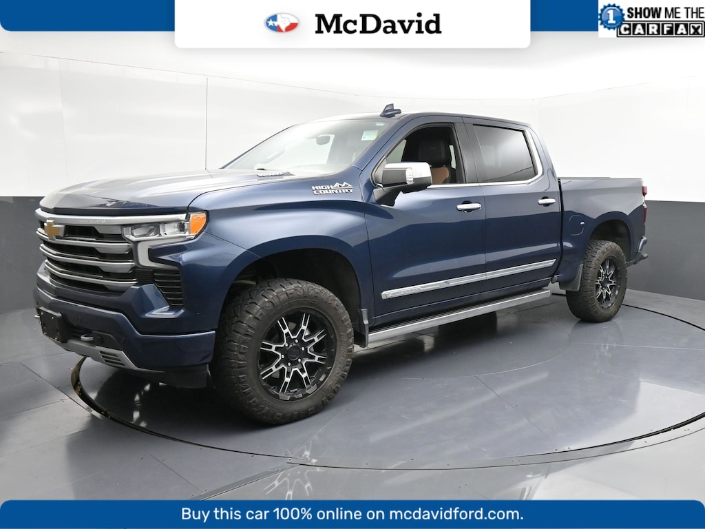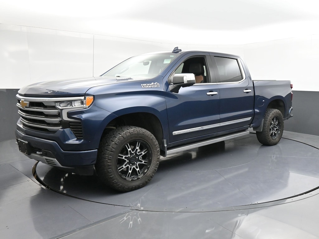CARFAX One-Owner. Clean CARFAX. Northsky Blue Metallic 2023 Chevrolet Silverado 1500 High Country 4WD 10-Speed Automatic 3.0L I6 BLUETOOTH, REAR BACK UP CAMERA, APPLE CAR PLAY, 10-Speed Automatic, 4WD, Jet Black/Umber Leather, 10-Way Power Driver Seat w/Lumbar, 10-Way Power Passenger Seat Adjuster w/Lumbar, 12.3 Multicolor Reconfigurable Digital Display, 120-Volt Bed Mounted Power Outlet, 120-Volt Instrument Panel Power Outlet, 15 Diagonal Multicolor Head-Up Display, 2 USB Data Ports, 2nd Row Heated Outboard Seats, Adaptive Cruise Control, Auto-Dimming Inside Rear-View Mirror, Auto-Locking Rear Differential, Bed View Camera, Bluetooth® For Phone, Body-Color Painted Mirror Caps, Chevrolet Connected Access Capable, Chevytec Spray-On Black Bedliner, Chrome Assist Steps, Chrome Recovery Hooks, Color-Keyed Carpeting Floor Covering, Compass, Deep-Tinted Glass, Driver Memory, Dual Exhaust w/Polished Outlets, Dual Rear USB Ports (Charge Only), Electric Rear-Window Defogger, Electrical Steering Column Lock, Electronic Cruise Control, Floor Mounted Center Console, Front Carpeted Floor Mats, Front dual zone A/C, Front LED Fog Lamps, Front Rainsensing Wipers, HD Surround Vision, Heated Driver & Front Outboard Passenger Seats, Heated Steering Wheel, High Capacity Suspension Package, Hitch Guidance, Hitch Guidance w/Hitch View, Integrated Trailer Brake Controller, Keyless Open & Start, LED Cargo Area Lighting, Memory seat, OnStar & Chevrolet Connected Services Capable, Outside Heated Power-Adjustable Mirrors, Perimeter Lighting, Power driver seat, Power Front Passenger Windows w/Express Up/Down, Power Front Windows w/Driver Express Up/Down, Power Rear Windows w/Express Down, Power Sliding Rear Window w/Rear Defogger, Power steering, Power Tailgate, Power Tilt & Telescoping Steering Column, Power windows, Preferred Equipment Group 3LZ, Premium audio system: Chevrolet Infotainment 3 Premium, Premium Bose 7-Speaker Sound System, Rear Camera Mirror, Rear Carpeted Floor Mats, Rear Cross Traffic Alert-Braking, Rear Pedestrian Alert, Rear Wheelhouse Liners, Remote keyless entry, Remote Vehicle Starter System, Safety Alert Seat, SiriusXM w/360L, Standard Tailgate, Steering Wheel Audio Controls, Technology Package, Theft Deterrent System (Unauthorized Entry), Trailer Camera Provisions, Trailer Side Blind Zone Alert, Trailering App, Trailering Package, Ultrasonic Front & Rear Park Assist, Universal Home Remote, Up-Level Rear Seat w/Storage Package, Ventilated Driver & Front Passenger Seats, Wi-Fi Hot Spot Capable, Wireless Charging, Wireless Phone Projection, Wrapped Steering Wheel.