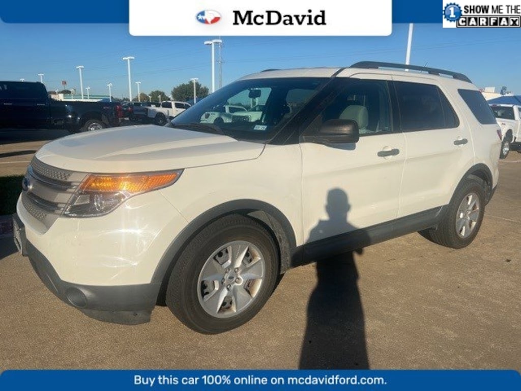 CARFAX One-Owner. White Suede 2012 Ford Explorer FWD 6-Speed Automatic with Select-Shift 3.5L V6 Ti-VCT BLUETOOTH, REAR BACK UP CAMERA, 6 Speakers, Air Conditioning, CD player, Outside temperature display, Power door mirrors, Power driver seat, Power steering, Power windows, Radio: AM/FM Stereo w/Single CD/MP3 Capable, Remote keyless entry, Speed-sensing steering, Steering wheel mounted audio controls, Telescoping steering wheel, Tilt steering wheel.