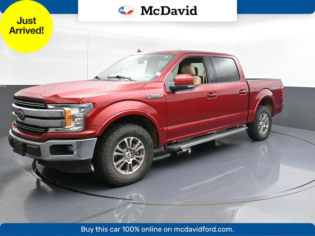 Clean CARFAX. Ruby Red 2018 Ford F-150 Lariat 4WD 10-Speed Automatic 5.0L V8 BLUETOOTH, REAR BACK UP CAMERA, 4WD, 7 Speakers, Alloy wheels, AppLink/Apple CarPlay and Android Auto, Auto-dimming door mirrors, Auto-dimming Rear-View mirror, CD player, Class IV Trailer Hitch Receiver, Emergency communication system: SYNC 3 911 Assist, Equipment Group 500A Base, Exterior Parking Camera Rear, Front dual zone A/C, Front fog lights, Fully automatic headlights, GVWR: 7,050 lbs Payload Package, Heated front seats, Higher-Capacity Radiator, Higher-Power Cooling Fans, Low tire pressure warning, Memory seat, Outside temperature display, Pedal memory, Power door mirrors, Power driver seat, Power passenger seat, Power steering, Power windows, Pro Trailer Backup Assist, Radio: Single-CD/SiriusXM w/7 Speakers, Remote keyless entry, Steering wheel mounted audio controls, SYNC 3, Telescoping steering wheel, Tilt steering wheel, Trailer Tow Package, Upgraded Front Stabilizer Bar, Ventilated front seats, Voice-Activated Touchscreen Navigation System.