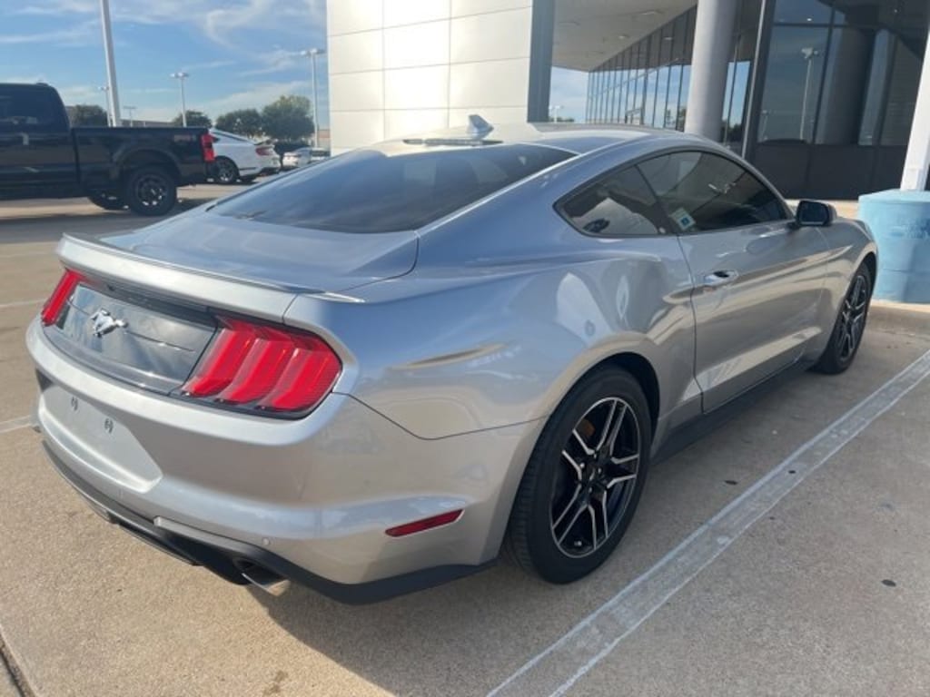 Iconic Silver Metallic 2022 Ford Mustang EcoBoost Premium RWD 10-Speed Automatic EcoBoost 2.3L I4 GTDi DOHC Turbocharged VCT 12 LCD Digital Instrument Cluster w/MyColor, Adaptive Cruise Control, Equipment Group 201A, Ford Safe & Smart Package, Heated Steering Wheel, Integrated Turn Signals, Leather-Trimmed Bucket Seats w/Color Accents, Memory Driver Seat, Mirrors & Ambient Lighting, Universal Garage Door Opener (UGDO), Voice-Activated Touch-Screen Navigation System.