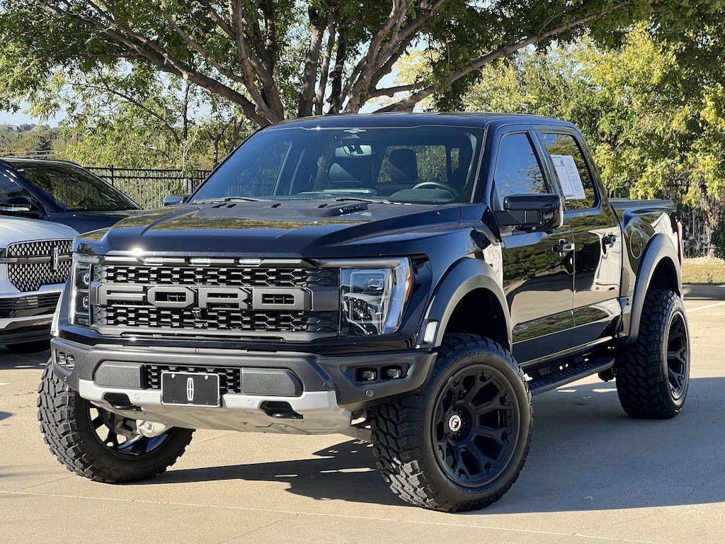 Clean CARFAX. Agate Black Metallic 2023 Ford F-150 Raptor 4WD 10-Speed Automatic 3.5L V6 EcoBoost F-150 Raptor, 4D SuperCrew, 3.5L V6 EcoBoost, 10-Speed Automatic, 4WD, Agate Black Metallic, Black Leather, 17 Cast Aluminum Wheels, 18 Speakers, 4-Wheel Disc Brakes, ABS brakes, Adaptive suspension, Adjustable pedals, Air Conditioning, Alloy wheels, AM/FM radio: SiriusXM with 360L, Auto High-beam Headlights, Auto Start-Stop Removal (DISC), Auto tilt-away steering wheel, Auto-dimming door mirrors, Auto-dimming Rear-View mirror, Automatic temperature control, Brake assist, Bumpers: body-color, Compass, Delay-off headlights, Driver door bin, Driver vanity mirror, Dual front impact airbags, Dual front side impact airbags, Electronic Locking w/4.10 Axle Ratio, Electronic Stability Control, Emergency communication system, Equipment Group 801A Standard, Exterior Parking Camera Rear, Front anti-roll bar, Front Bucket Seats, Front Center Armrest, Front dual zone A/C, Front fog lights, Front reading lights, Front wheel independent suspension, Fully automatic headlights, Garage door transmitter, GVWR: 7,300 lbs Payload Package, Heated door mirrors, Heated front seats, Heated rear seats, Heated steering wheel, Illuminated entry, Lane Departure Warning System, Leather Trim Seats w/Heated 2nd Row, Low tire pressure warning, Memory seat, Navigation system: Connected Navigation, Occupant sensing airbag, Outside temperature display, Overhead airbag, Overhead console, Panic alarm, Passenger door bin, Passenger vanity mirror, Pedal memory, Power door mirrors, Power driver seat, Power passenger seat, Power steering, Power windows, Radio data system, Radio: B&O Unleashed Sound System by Bang & Olufsen, Rain sensing wipers, Rear reading lights, Rear step bumper, Rear window defroster, Remote keyless entry, Security system, Speed control, Speed-sensing steering, Split folding rear seat, Steering Wheel Heat Removal (DISC), Steering wheel memory, Steering wheel mounted audio controls, SYNC 4 w/Enhanced Voice Recognition, Tachometer, Telescoping steering wheel, Tilt steering wheel, Traction control, Trip computer, Turn signal indicator mirrors, Variably intermittent wipers, Ventilated front seats.