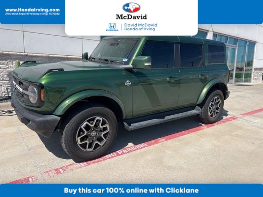 Elevate your adventures with the 2025 Ford Bronco Outer Banks. This stunning Eruption Green Metallic SUV is equipped with the luxurious Equipment Group 314A package, offering features like evasive steering assist, a 360-degree camera, and a premium B&O sound system. With its rugged good looks and advanced technology, the Bronco Outer Banks is the ultimate expression of Ford's legendary off-road heritage.