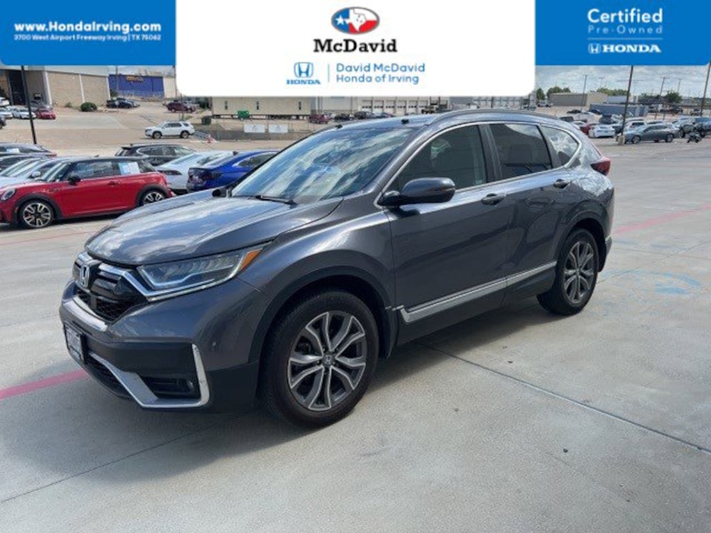 New Arrival! This 2021 Honda CR-V Touring has a sharp! Bluetooth Heated Front Seats Keyless Entry Remote Start Backup Camera Navigation leather seats! The navigation system is best in class and very easy to use! You can find more information on this CR-V on our website: https://www.mcdavidhondairving.com/. Our vehicles are value priced and move quickly. Be sure to call us to confirm availability and to schedule a hassle free test drive (469) 405-3340! We are located at: 3700 W Airport Fwy, Irving, TX 75062. For more than 70 years, David McDavid Honda of Irving has been serving the automotive needs of drivers throughout the Dallas Fort Worth Metroplex. We stock a large selection of new and used Honda cars at great prices. If you need assistance with choosing a new car, obtaining financing, or have service and repair questions, our friendly and knowledgeable staff will get your questions answered. Our dealership is located in Irving, but we proudly serve the Dallas, Fort Worth, Arlington, and Grand Prairie and DFW area.