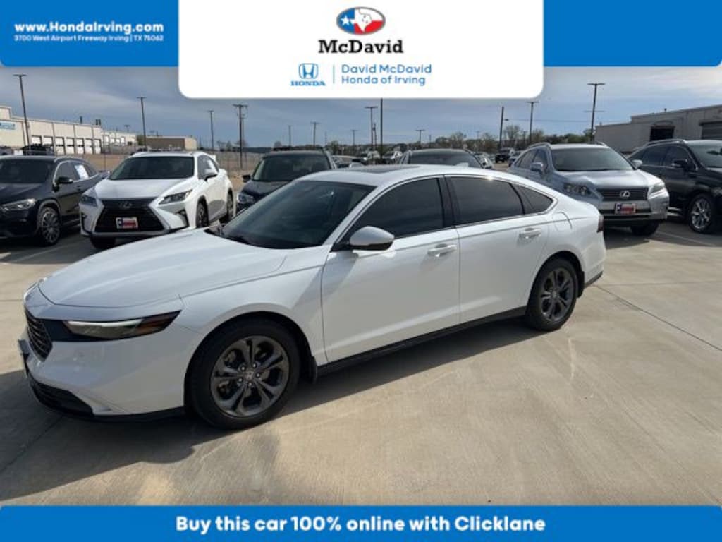 NEW ARRIVAL! CARFAX 1-OWNER! This Platinum White Pearl 2023 Honda Accord Hybrid EX-L with Black interior is a 100% CARFAX Guarantee vehicle. This Accord Hybrid is equipped with -Bluetooth Connectivity- -Heated Front Seats- -Keyless Entry- -Backup Camera- -Leather- -Parking Sensors- -Alloy Wheels- -Power Driver's Seat- -Front Bucket Seats- -Memory Seats- -Multi-Zone Air Conditioning- -Auto Climate Control- -Auxiliary Input- -Power Windows- -Cruise Control- -Tire Pressure Monitoring System- -Traction Control- -Automatic Headlights- -Front Wheel Drive- -Heated Mirrors- -AM/FM Radio- -Lumbar Support- -Parking Sensors- -Security System- -Stability Control- -Steering Wheel Controls- -ABS Brakes- and many other amenities that are sure to please. Based on the excellent condition of this vehicle, along with the options and color, this Accord Hybrid is sure to sell fast. Our pricing is very competitive and our vehicles sell quickly. Please call us to confirm availability and to setup a time to drive this Accord Hybrid! Contact us at (469) 405-3340. We are located at 3700 W Airport Fwy, Irving, TX 75062