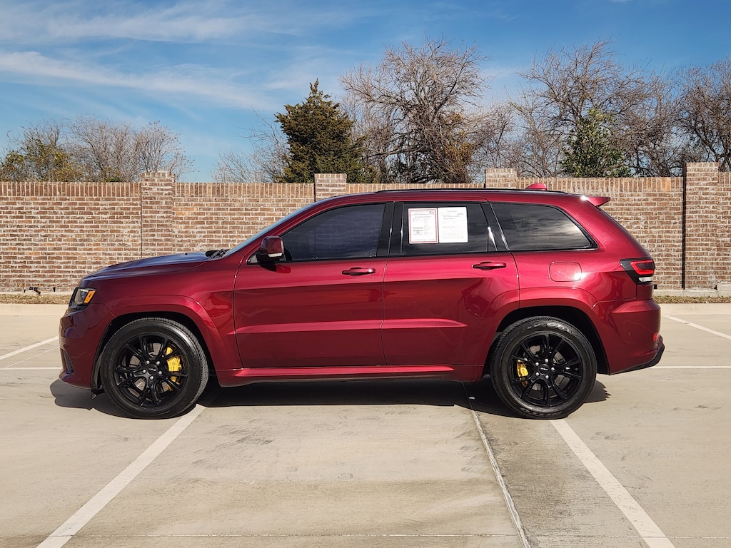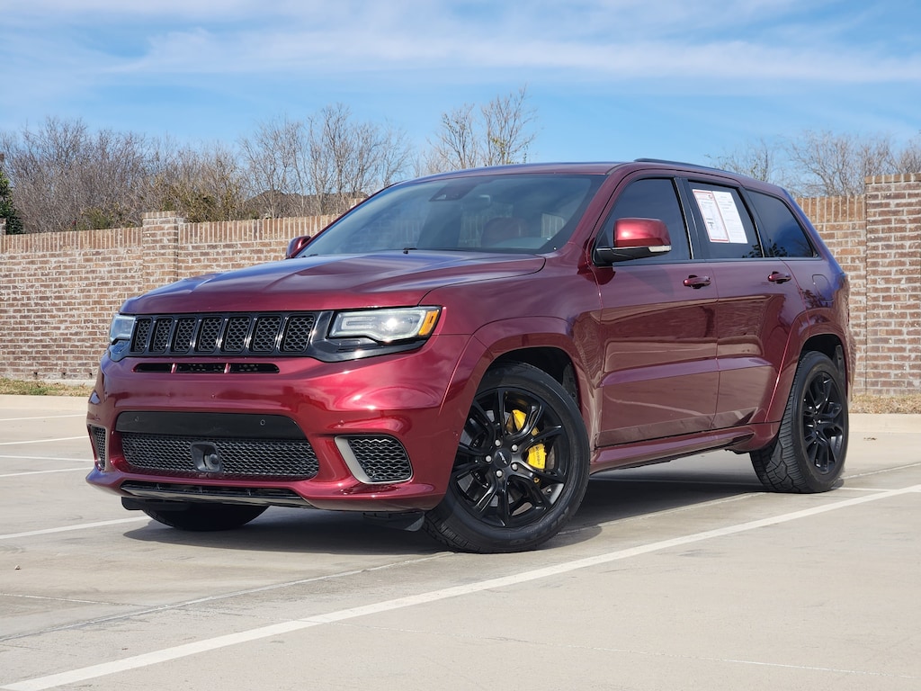 Velvet Red Pearlcoat 2017 Jeep Grand Cherokee SRT 4WD 8-Speed Automatic SRT HEMI 6.4L V8 MDS Grand Cherokee SRT, 4D Sport Utility, SRT HEMI 6.4L V8 MDS, 8-Speed Automatic, 4WD, Velvet Red Pearlcoat, Dark Ruby Red/Black w/Laguna Leather Seats, 10 Speakers, 19 Speakers High Performance Audio, 3.70 Rear Axle Ratio, 4-Wheel Disc Brakes, 7 & 4 Pin Wiring Harness, 825 Watt Amplifier, ABS brakes, Adaptive suspension, Adv Leather Multistage Front Air Bags, Air Conditioning, Alloy wheels, AM/FM radio: SiriusXM, Anti-whiplash front head restraints, Audio memory, Auto High-beam Headlights, Auto-dimming door mirrors, Auto-dimming Rear-View mirror, Automatic temperature control, Brake assist, Bumpers: body-color, Class IV Receiver Hitch, Compass, Delay-off headlights, Driver door bin, Driver vanity mirror, Dual front impact airbags, Dual front side impact airbags, Dual-Pane Panoramic Sunroof, Electronic Stability Control, Emergency communication system: Uconnect Access, Exterior Parking Camera Rear, Four wheel independent suspension, Front anti-roll bar, Front Bucket Seats, Front Center Armrest w/Storage, Front dual zone A/C, Front fog lights, Front reading lights, Fully automatic headlights, Garage door transmitter, Headlight cleaning, Heated door mirrors, Heated front seats, Heated rear seats, Heated steering wheel, Heavy-Duty Engine Cooling, High intensity discharge headlights: Bi-Xenon, High Performance Brakes, High Performance Suspension, Illuminated entry, Knee airbag, Laguna Leather Care Instruction Tag, Laguna Leather Reserve Door Trim, Laguna Leather Seats, Leather Shift Knob, Leather Wrapped Lower Panels, Leather/Perforated Suede SRT Seats, Low tire pressure warning, Manufacturer's Statement of Origin, Memory seat, Navigation System, Occupant sensing airbag, Outside temperature display, Overhead airbag, Overhead console, Panic alarm, Passenger door bin, Passenger vanity mirror, Power door mirrors, Power driver seat, Power Liftgate, Power passenger seat, Power steering, Power windows, Premium Headliner Module, Quick Order Package 27L, Radio data system, Radio: Uconnect 8.4 NAV, Rain sensing wipers, Rear anti-roll bar, Rear reading lights, Rear seat center armrest, Rear window defroster, Rear window wiper, Red Seat Belts, Remote keyless entry, Security system, Signature Leather Wrapped Interior Package, Speed control, Speed-Sensitive Wipers, Split folding rear seat, Spoiler, SRT High Performance Audio, Steering wheel mounted audio controls, Tachometer, Telescoping steering wheel, Tilt steering wheel, Traction control, Trailer Tow Group IV, Trip computer, Turn signal indicator mirrors, Variably intermittent wipers, Ventilated front seats, Wheels: 20 x 10.0 Forged 5-Spoke Polished, Wheels: 20 x 10.0 Forged Carbon Black.