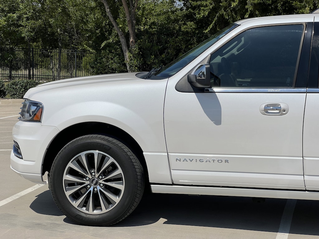 White Platinum Clearcoat Metallic 2017 Lincoln Navigator Select 4WD 6-Speed Automatic V6 Navigator Select, 4D Sport Utility, V6, 6-Speed Automatic, 4WD, White Platinum Clearcoat Metallic, Medium Light Stone Leather, 14 Speakers, 3.73 Rear Axle Ratio, 3rd row seats: split-bench, 4-Wheel Disc Brakes, ABS brakes, Adjustable pedals, Air Conditioning, Alloy wheels, AM/FM radio: SiriusXM, Auto-dimming door mirrors, Auto-dimming Rear-View mirror, Auto-leveling suspension, Automatic temperature control, Bumpers: body-color, CD player, Compass, Delay-off headlights, Driver door bin, Driver vanity mirror, Dual front impact airbags, Dual front side impact airbags, DVD-Audio, Electronic Stability Control, Emergency communication system: SYNC 3 911 Assist, Equipment Group 200A Select, Exterior Parking Camera Rear, Four wheel independent suspension, Front anti-roll bar, Front Bucket Seats, Front Center Armrest, Front dual zone A/C, Front License Plate Bracket, Front reading lights, Fully automatic headlights, Garage door transmitter: HomeLink, Genuine wood console insert, Genuine wood dashboard insert, Genuine wood door panel insert, Heated door mirrors, Heated front seats, Heated rear seats, High-Intensity Discharge Headlights, Illuminated entry, Leather steering wheel, Low tire pressure warning, Memory seat, Navigation System, Outside temperature display, Overhead airbag, Overhead console, Panic alarm, Passenger door bin, Passenger vanity mirror, Pedal memory, Power door mirrors, Power driver seat, Power Liftgate, Power Moonroof, Power passenger seat, Power steering, Power windows, Premium audio system: THX II, Premium Leather Low Back Bucket Seats, Radio data system, Radio: HD w/Single CD/DVD/MP3 Player, Rain sensing wipers, Rear air conditioning, Rear anti-roll bar, Rear audio controls, Rear reading lights, Rear window defroster, Rear window wiper, Reclining 3rd row seat, Remote keyless entry, Roof rack, Security system, SiriusXM Satellite Radio, Speed control, Speed-sensing steering, Speed-Sensitive Wipers, Steering wheel memory, Steering wheel mounted audio controls, SYNC 3 Communications & Entertainment System, Tachometer, Telescoping steering wheel, Tilt steering wheel, Traction control, Trip computer, Turn signal indicator mirrors, Variably intermittent wipers, Ventilated front seats, Wheels: 20 Ultra Brite Machined Aluminum.