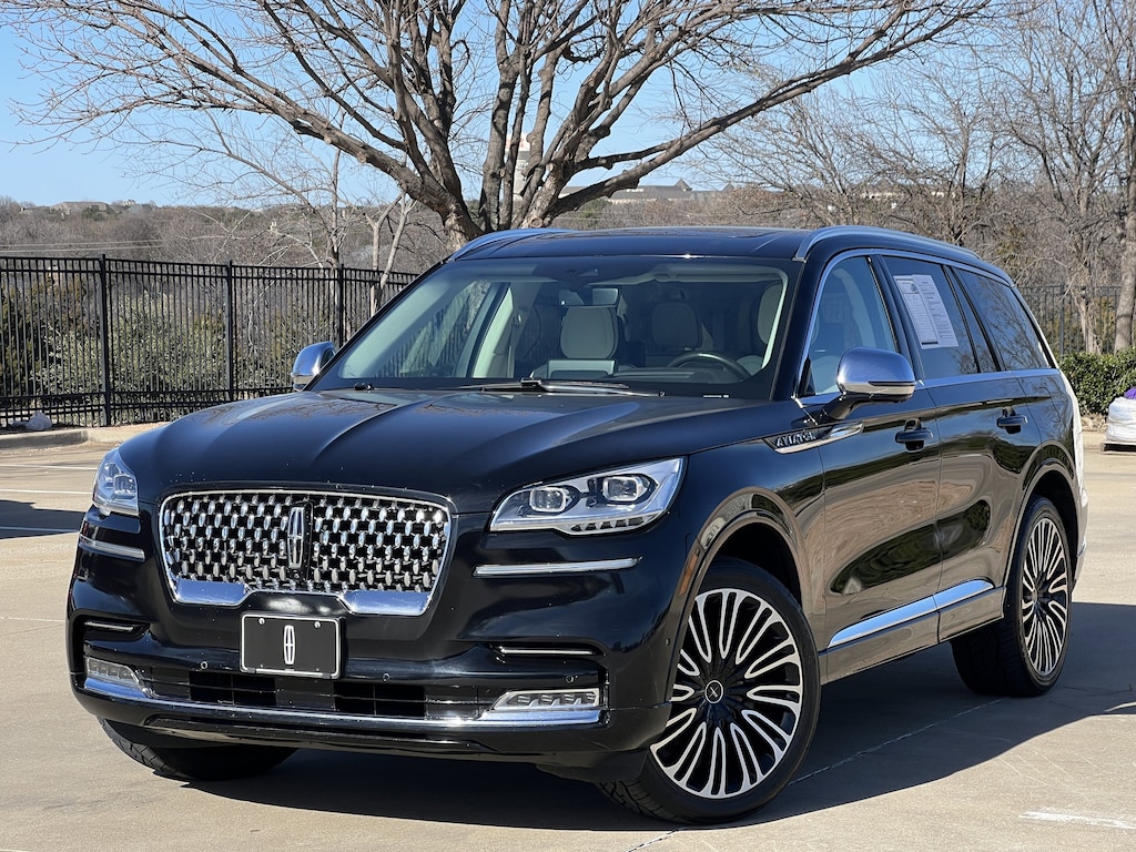 CARFAX One-Owner. Black 2020 Lincoln Aviator Black Label AWD 10-Speed Automatic 3.0L V6 Aviator Black Label, 4D Sport Utility, 3.0L V6, 10-Speed Automatic, AWD, Black, Cashmere Leather, 28 Speakers, 3.58 Axle Ratio, 30-Way Perfect Position Seats w/Active Motion, 3rd row seats: split-bench, 4-Wheel Disc Brakes, ABS brakes, Adaptive Steering, Adaptive suspension, Adaptive Suspension w/Road Preview, Air Conditioning, Air Glide Suspension w/Dynamic Lower Entry, Alloy wheels, AM/FM radio: SiriusXM, Audio memory, Auto High-beam Headlights, Auto-dimming door mirrors, Auto-dimming Rear-View mirror, Automatic temperature control, Brake assist, Bumpers: body-color, Cargo Area Cover, Cargo Area Protector (Dealer Installed), Cashmere Headliner, Cashmere Leather-Wrapped Interior, Chalet Theme, Compass, Delay-off headlights, Door auto-latch, Driver door bin, Driver vanity mirror, Dual front impact airbags, Dual front side impact airbags, Dynamic Handling Package, Electronic Stability Control, Emergency communication system: SYNC 3 911 Assist, Equipment Group 800A, Espresso Floor Carpet/Mat, Four wheel independent suspension, Front anti-roll bar, Front Bucket Seats, Front Center Armrest, Front dual zone A/C, Front fog lights, Front reading lights, Full Rear Console, Fully automatic headlights, Garage door transmitter, Head restraints memory, Heads-Up Display, Heated door mirrors, Heated front seats, Heated rear seats, Heated steering wheel, HVAC memory, Illuminated entry, Knee airbag, Lincoln Play Rear Seat Entertainment System, Low tire pressure warning, Mahogany Khaya Appliques w/Etched Logo, Mahogany Red Floor Carpet/Mats, Mahogany Red Headliner, Mahogany Red Leather-Wrapped Interior, Memory seat, Navigation System, Occupant sensing airbag, Outside temperature display, Overhead airbag, Overhead console, Panic alarm, Passenger door bin, Passenger vanity mirror, Power adjustable front head restraints, Power door mirrors, Power driver seat, Power Liftgate, Power moonroof, Power passenger seat, Power steering, Power windows, Radio data system, Radio: Revel Ultima 3D Audio System w/28 Speakers, Rain sensing wipers, Rear air conditioning, Rear anti-roll bar, Rear audio controls, Rear dual zone A/C, Rear reading lights, Rear window defroster, Rear window wiper, Remote keyless entry, Savannah Leather Heated/Ventilated Seats (76A), Savannah Leather Heated/Ventilated Seats (76E), Security system, Silverwood Appliques w/Logo Decal, SiriusXM Radio, Speed control, Speed-Sensitive Wipers, Split folding rear seat, Spoiler, Steering wheel memory, Steering wheel mounted A/C controls, Steering wheel mounted audio controls, SYNC 3 Communication & Entertainment System, Tachometer, Telescoping steering wheel, Tilt steering wheel, Traction control, Trip computer, Turn signal indicator mirrors, Variably intermittent wipers, Ventilated front seats, Ventilated rear seats, Wheels: 22 Ultra Bright Machined Aluminum.