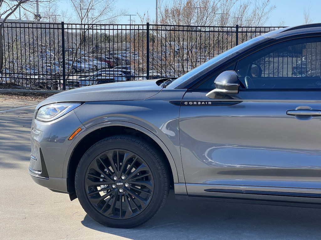 Asher Gray Metallic Clearcoat 2023 Lincoln Corsair Reserve FWD 8-Speed Automatic 2.0L Turbocharged Corsair Reserve, 4D Sport Utility, 2.0L Turbocharged, 8-Speed Automatic, FWD, Asher Gray Metallic Clearcoat, Cashew Leather, 10 Speakers, 3.81 Axle Ratio, 360-Degree Camera, 4-Wheel Disc Brakes, 60/40 EasyFold Rear Seat w/Power Seatback Release, ABS brakes, Air Conditioning, Alloy wheels, AM/FM radio: SiriusXM, Auto High-beam Headlights, Auto-dimming Rear-View mirror, Automatic temperature control, Body-Color Exterior Elements, Brake assist, Bumpers: body-color, Compass, Delay-off headlights, Driver door bin, Driver vanity mirror, Dual front impact airbags, Dual front side impact airbags, Electronic Stability Control, Emergency communication system: SYNC 4 911 Assist, Equipment Group 201A, Finestra Aluminum Applique, Four wheel independent suspension, Frameless Auto Dimming Rearview Mirror, Front anti-roll bar, Front Bucket Seats, Front Center Armrest, Front dual zone A/C, Front reading lights, Front/Side/Rear Parking Sensors, Fully automatic headlights, Hands-Free Liftgate, Heated door mirrors, Heated front seats, Heated Sideview Mirrors, Heated Steering Wheel, Heated/Ventilated Driver & Front Passenger Seats, Illuminated entry, Jet Appearance Package, Knee airbag, Leather steering wheel, Lincoln Premium Audio System Subwoofer Delete, Low tire pressure warning, Memory seat, Navigation system: Connected Navigation (3-year trial), Occupant sensing airbag, Outside temperature display, Overhead airbag, Overhead console, Panic alarm, Passenger door bin, Passenger vanity mirror, Phone As A Key (PAAK), Pillar Black Exterior Elements, Power door mirrors, Power driver seat, Power Liftgate, Power passenger seat, Power steering, Power Tilt/Telescoping Steering Column w/Memory, Power windows, Premium Leather Heated Comfort Seats, Radio data system, Radio: Lincoln Premium Audio System w/MP3, Rain Sensing Wipers, Rear anti-roll bar, Rear Parking Sensors, Rear reading lights, Rear seat center armrest, Rear window defroster, Rear window wiper, Remote keyless entry, Reverse Brake Assist, Roof rack: rails only, Security system, SiriusXM Radio, Speed control, Speed-sensing steering, Speed-Sensitive Wipers, Split folding rear seat, Spoiler, Steering wheel mounted A/C controls, Steering wheel mounted audio controls, SYNC 4 Communications & Entertainment System, Tachometer, Telescoping steering wheel, Tilt steering wheel, Traction control, Trip computer, Universal Garage Door Opener, Variably intermittent wipers, Wheels: 20 Black Aluminum, Windshield Wiper De-Icer, Wireless Charging Pad.