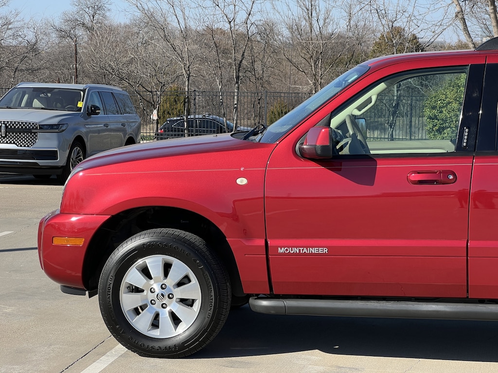 CARFAX One-Owner. Vivid Red Clearcoat Metallic 2008 Mercury Mountaineer RWD 5-Speed Automatic with Overdrive 4.0L V6 SOHC 12V 4D Sport Utility, 4.0L V6 SOHC 12V, 5-Speed Automatic with Overdrive, RWD, Vivid Red Clearcoat Metallic, Camel w/Leather-Trimmed Low Back Sport Bucket Seats, 17 Machined Aluminum Wheels, 3.55 Axle Ratio, 4 Speakers, 4-Wheel Disc Brakes, ABS brakes, Air Conditioning, Alloy wheels, AM/FM radio, Auto-dimming Rear-View mirror, Bumpers: body-color, CD player, Cloth Low-Back Buckets, Compass, Delay-off headlights, Driver door bin, Driver vanity mirror, Dual front impact airbags, Dual front side impact airbags, Electronic Stability Control, Four wheel independent suspension, Front anti-roll bar, Front Bucket Seats, Front Center Armrest, Front fog lights, Front reading lights, Fully automatic headlights, GVWR: 6,010 lbs Payload Package, Heated door mirrors, Illuminated entry, Low tire pressure warning, Occupant sensing airbag, Outside temperature display, Overhead airbag, Overhead console, Panic alarm, Passenger door bin, Passenger vanity mirror, Power door mirrors, Power driver seat, Power steering, Power windows, Premium AM/FM Stereo/MP3/Single CD, Rear anti-roll bar, Rear reading lights, Rear window defroster, Rear window wiper, Remote keyless entry, Roof rack: rails only, Speed control, Speed-sensing steering, Speed-Sensitive Wipers, Split folding rear seat, Steering wheel mounted audio controls, Tachometer, Tilt steering wheel, Traction control, Trip computer, Variably intermittent wipers, Voltmeter.