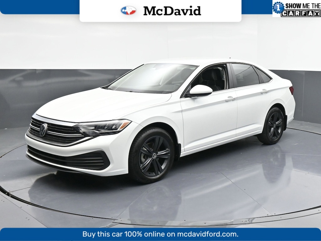 CARFAX One-Owner. Clean CARFAX. Opal White Pearl 2024 Volkswagen Jetta 1.5T SE FWD 8-Speed Automatic with Tiptronic 1.5L I-4 DI DOHC Turbocharged Titan Black w/V-Tex Leatherette Seat Trim, Black Wheel Package, Wheels: 17 Twin 5-Spoke Dark Graphite Painted Alloy.
